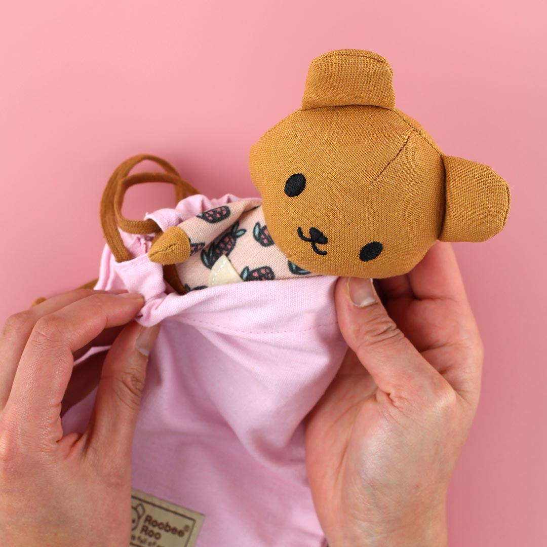 - It's got a cotton drawstring bag, so you can take travel-size Roobee Roo everywhere and spread sunshine wherever you go.